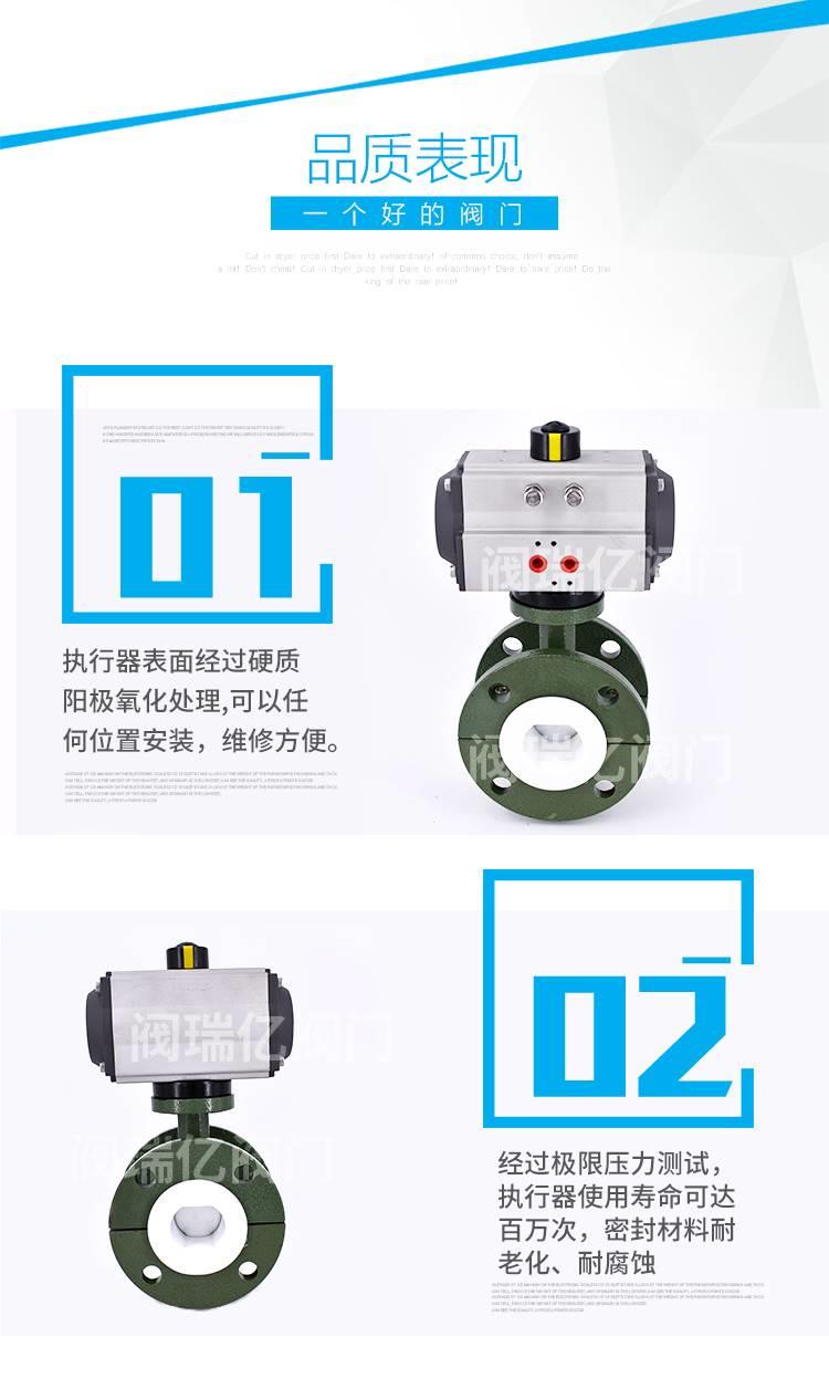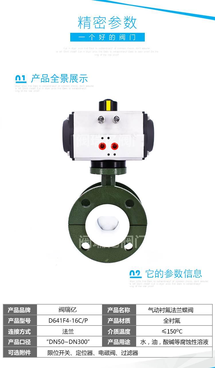 产品详情:气动衬氟蝶阀使用衬聚四氟乙烯包衬蝶板有着球形密封表面。该阀操作方便,密封严谨,用到寿命长;阀体使用分体式,阀轴两边的密封由蝶板与蝶板之间的旋转底面控制,适用于需迅速密封的场合。阀座和氟橡胶;保证阀轴不触及腔体中的流体介质,普遍用以各种类别的工业管道中的液体和气体(包括蒸气)的输送,以及用到硫酸等强腐蚀性介质,氢氟酸,磷酸,氯,强碱和其他高腐蚀性介质